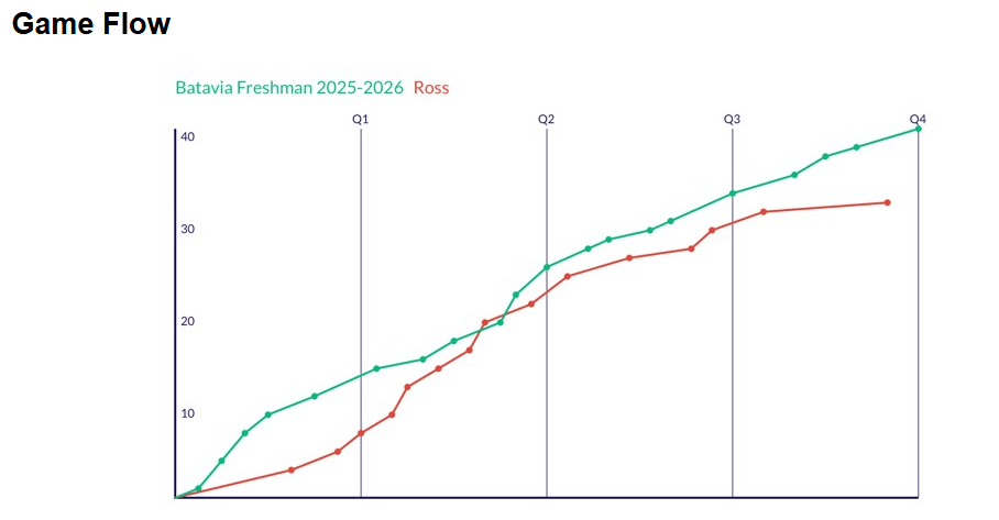 The Batavia Freshman team continued their perfect season with an impressive 40-32 home victory over Ross, improving to 4-0 on the year. The team showcased balanced scoring and clutch performances throughout the contest, maintaining their undefeated streak in front of their home crowd.