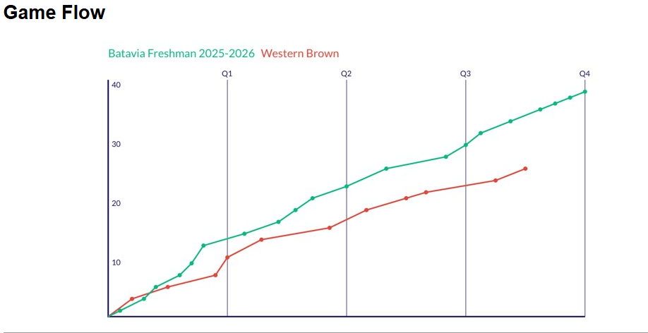 The Batavia Freshman maintained their perfect season with an impressive 38-25 victory over Western Brown at home, improving to 5-0 on the season. The team showcased balanced scoring and strong team chemistry throughout the contest, never trailing after the early minutes of the first quarter.